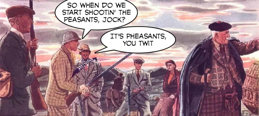 Here in the UK, we churlish peasants hate the landed aristocracy (and the nouveaux super-rich), not least for their hobbies of huntin’, shootin’ an’ fishin’. (The dropped end-consonant is an aristo affectation.)